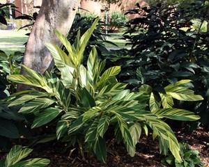 Variegated ginger grows best in partial shade, though it can take full sun, and requires rich, moist soil.